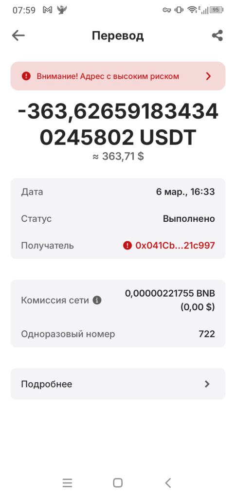 Вот 4 я транзакция на 363,71 USDT на адрес мошенника от 06.03.2026 год