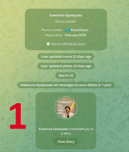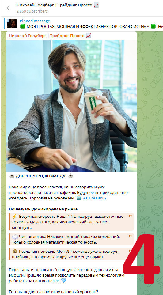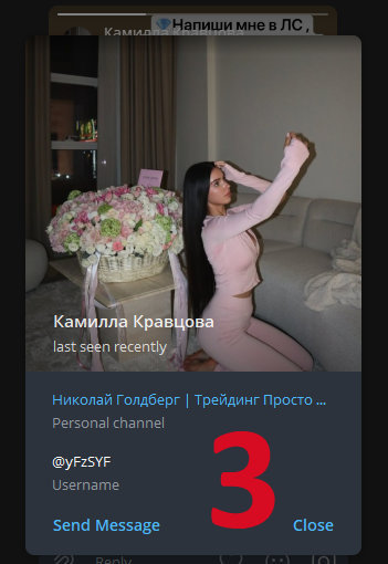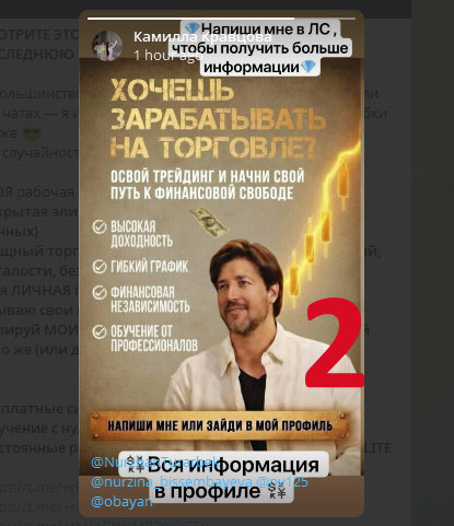 Относительно новая тактика мошенников. Сторис с упоминанием конкретно вас. Telegram присылает уведомление. Человеку интересно, кто его и почему упомянул. Ну, и часть подписывается на мошенника. В данном случае это «Николай Голдберг | Трейдинг Просто» (@Goldberg_signals, @otpq1773152286, Analyzing Trading, @analyzing_trading_bot).