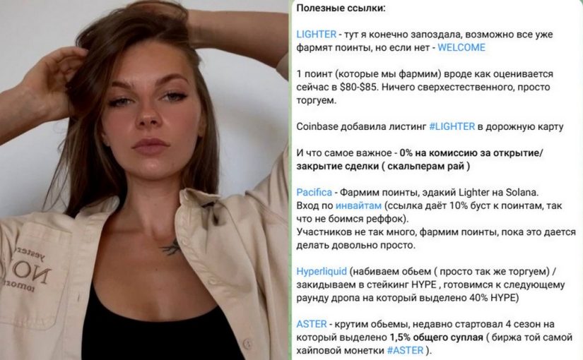 LIGHTER - тут я конечно запоздала, возможно все уже фармят поинты, но если нет - WELCOME 1 поинт (которые мы фармим) вроде как оценивается сейчас в $80-$85. Ничего сверхестественного, просто торгуем. Coinbase добавила листинг #LIGHTER в дорожную карту И что самое важное - 0% на комиссию за открытие/закрытие сделки ( скальперам рай ) Pacifica - Фармим поинты, эдакий Lighter на Solana. Вход по инвайтам (ссылка даёт 10% буст к поинтам, так что не боимся реффок). Участников не так много, фармим поинты, пока это дается делать довольно просто. Hyperliquid (набиваем обьем ( просто так же торгуем) / закидываем в стейкинг HYPE , готовимся к следующему раунду дропа на который выделено 40% HYPE) ASTER - крутим обьемы, недавно стартовал 4 сезон на который выделено 1,5% общего суплая ( биржа той самой хайповой монетки #ASTER ). ОБМЕННИК ( которым пользуюсь лично ) Prosto Exchange - выводим профит с крипты безопасно( пользуюсь сама, создан знаменитыми в кругах крипто программистов, суммы по 100к+ выводятся без проблем, выводят с белых карт ИП ( продажи товаров Озон/Вб ) с адекватными ФИО, а не набором букв, никаких проблем, вижу, что мои подписчики, кто уже пробовал - так же выводят без каких либо проблем ) - Добавлены новые методы покупки USDT - Работают 24/7