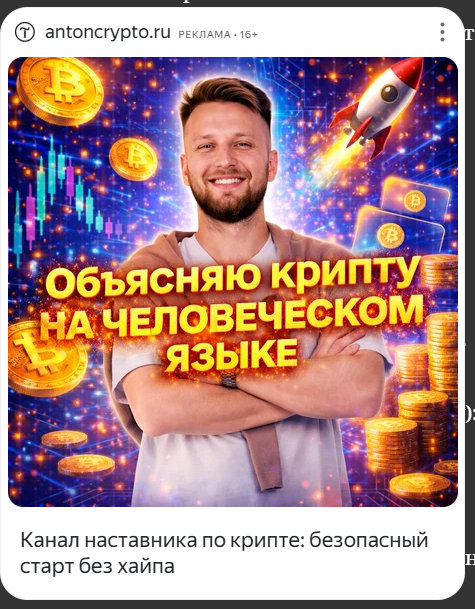 «Телеграм-канал Антона Медведева, крипто-наставника по безопасному старту для новичков и «осознанных учеников» о том, как освоить крипту по чёткому маршруту и не тонуть в инфошуме, сохраняя контроль над эмоциями и капиталом. Криптовалюта для новичков — спокойно и по шагам. Для тех, кто хочет наконец разобраться в крипте и получать стабильный доход. Подписаться и забрать мини-курс бесплатно».