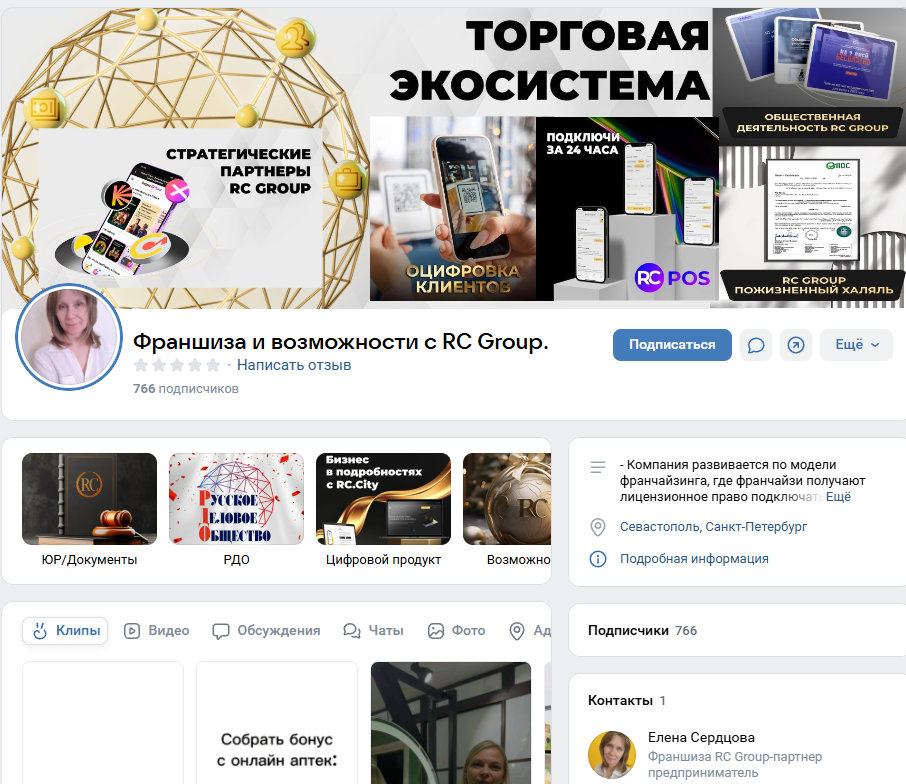 Ее паблик называется Франшиза и возможности с RC Group (vk.com/public205482926).
