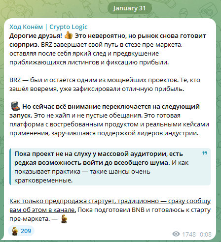Последний пост анонсирует ещё один токен «готовой платформы с востребованным продуктом». А вот и он: