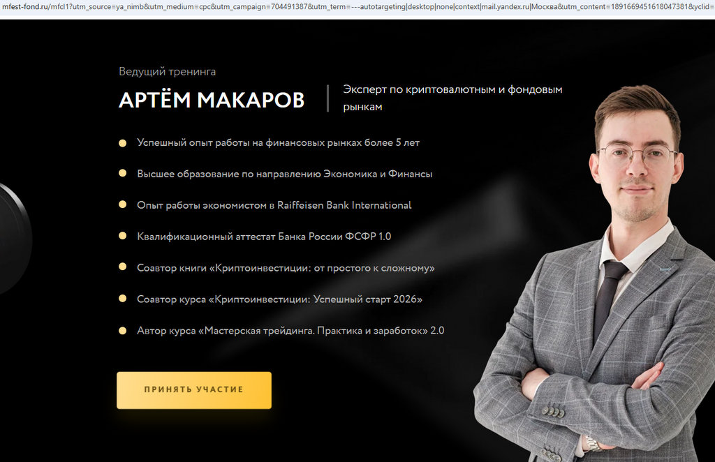 На сайте mfest-fond.ru, про который вы писали уже, очередной новый криптогуру. Артём Макаров