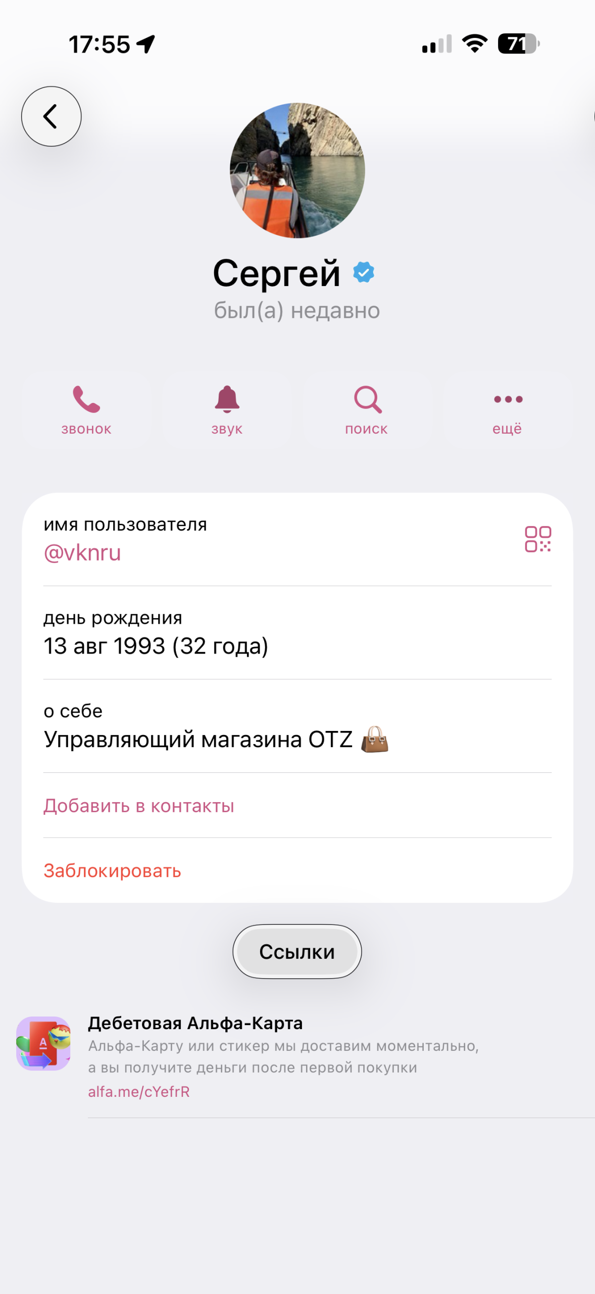 Заморочились, написали сайт, представляются огромным магазином сумок с озона, обещают 2200 за три часа, за писание ответов на вопросы о товаре, что много. После перехода в ТГ затребовали оформить Альфа карту. А у меня такая есть. Тогда диалог со мной удалили. Всё просто. По реферальной программе человек вам отправляет ссылку на получение альфа карты, ему зачисляются денежки, для вас никакой работы нет, только пустая Альфа карта