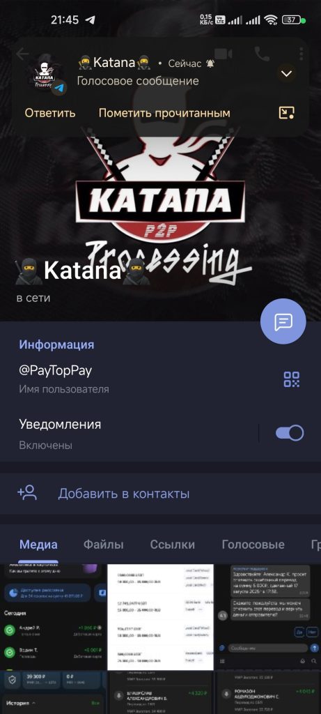 Под предлогом «быстрее/дешевле без комиссии», «лимиты мешают», «банк глючит» предлагают продолжить в Telegram (у вас — Katana, @PayToPay). Дальше сделки идут вне эскроу.