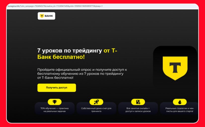 «7 уроков по трейдингу от Т-Банк бесплатно. Реальные стратегии и чек-листы для вашего старта!», — сказано на сайте, где указаны реквизиты ООО «Бизнес Платформа», ИНН 1659051168, ОГРН 1041628204738, 8 (930) 258 54 27, info@tradetutor.ru, 420021, Татарстан, г Казань, ул Парижской Коммуны, зд. 25/39.