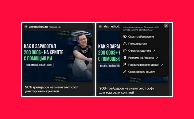 Здесь мальчонка нарисовался. Говорит про доход на «Криптовалюте с ИИ-софтом» в 260-500% в год. «Пассивный доход на автопилоте — без паники и мониторинга». «После курса используете работающие стратегии с ИИ, которые дают стабильный плюс 15-30% каждый месяц». Оцените честность и адекватность этого предложения (alexmethod.ru/white-new). Рекламодатель Никитин Александр Юрьевич, ИНН 027816451099, ID #315025777.