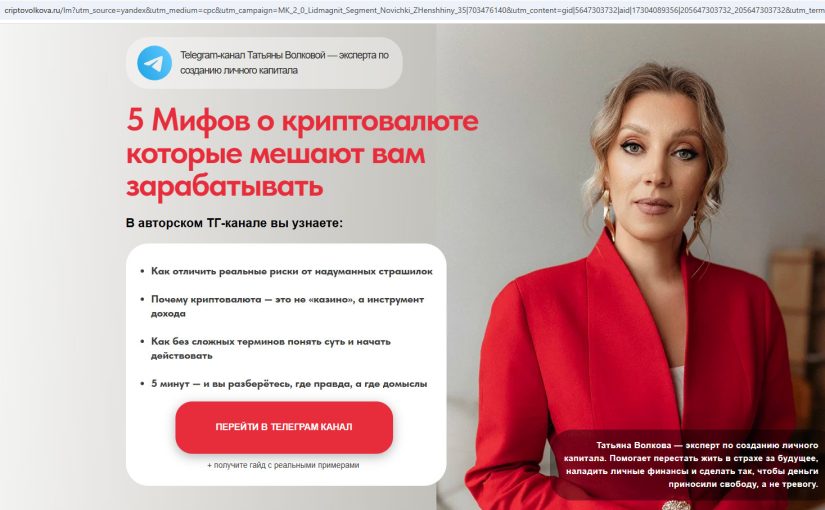 Например, она пишет про МИФ №5: »Криптовалюта — это сложно и небезопасно. Там всё слишком запутано. Легко потерять деньги могут взломать или украсть».
