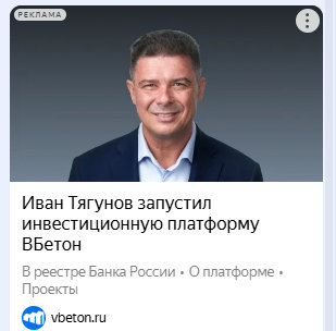 Что скажете за эту рекламу? Что за Иван Тягунов? Финансовые услуги оказывает: ООО «ВБЕТОН», ИНН 9701305215, ID #311479031