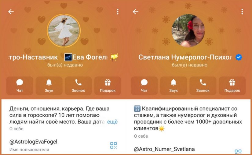 Мошенники используют аккаунты @AstrologEvaFogel, @Astro_Numer_Svetlana.
