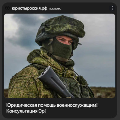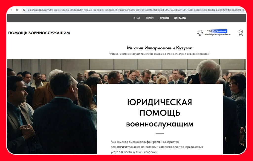 В интернете рекламируется сайт юристыроссия.рф. Он предлагает «помощь мобилизованным», «юридическую помощь военнослужащим». Однако указанное на сайте юрлицо ликвидировано 27.06.2025.