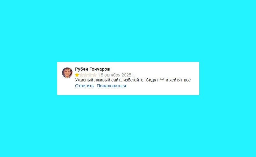 Некий Рубен Гончаров пишет про наш сайт: «Ужасный лживый сайт…избегайте .Сидят *** и хейтят все».
