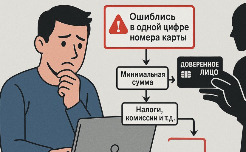 При выводе денег с инвестиционной платформы Quick ошибся в одной цифре номера карты. В итоге заблокировали вывод. Для разблокировки предложили вывести минимальную сумму на дебетовую карту доверенного физического лица. Что это за операция?
